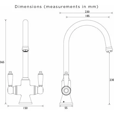 The graceful curve of the swan-neck spout and the neat simplicity of the monobloc design makes this a practical and elegant addition to your kitchen. The spout swivels to wherever you need the flow of water, and it has sufficient room to place large pans beneath. The control levers are located a little above the gently curved base and the ¼ turn ceramic disc valves let each one move smoothly at the gentlest of touches. With separate controls for the flow of the hot and the cold water, it is easy to get the perfect temperature mix. The levers are clearly marked in black, HOT and COLD. Inside, the ceramic disc valves will provide you with reliability and durability, and they will ensure that this tap never drips.