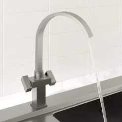 BUYAPARCEL Modern Mono Kitchen Sink Mixer Tap Brushed Nickel Twin Lever Swivel Spout +Flexi