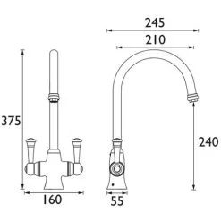 Bristan Colonial Bridge Kitchen Sink Mixer Tap Dual Handle – Chrome