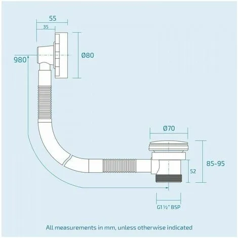 - Fits all standard UK specification 1 1/2 inch x 12mm threaded connections bath plumbing