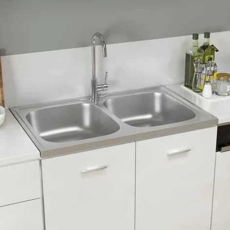 This kitchen sink with double basins and drainer set is a timeless addition to your existing kitchen decor.