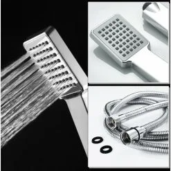 ENKI EH008 Modern Chrome Effect Square Bathroom Hand Held Shower Head And Hose