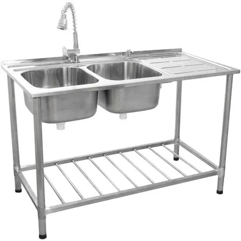 This free-standing commercial sink is perfect for any catering setting. With a double bowl, a spacious right-hand drainer and a lower storage shelf, it’s sure to improve efficiency in the kitchen.