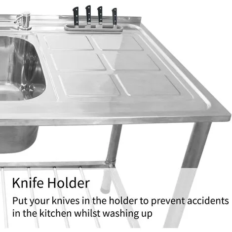 - Knife holder with draining board helps prevent accidents in the kitchen while washing up.
