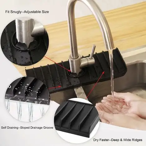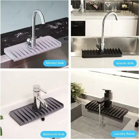 - 【Keep Your Countertop Dry】 Use silicone faucet water pads to keep your countertops clean and dry at all times. and you won’t have to worry about splattering your countertops.Also, you can place the detergent bottle on the mat to prevent leaks.