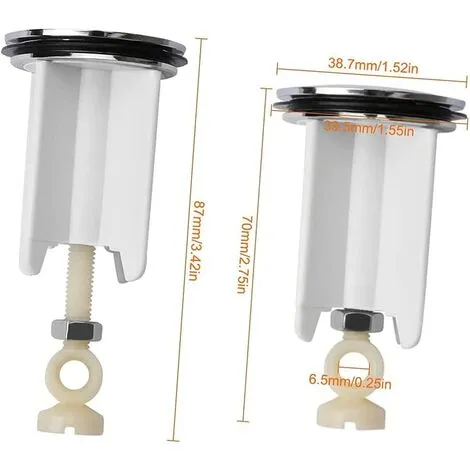 Size: 40mm diameter, height adjustable 7-8.7cm, ideal for replacement sink plugs Easy to install, just adjust the screw height and put it in the sink