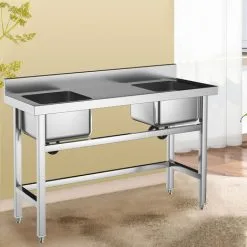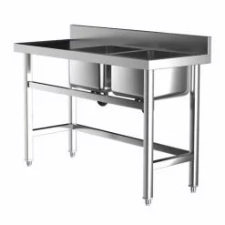 Livingandhome Stainless Steel Commercial Double Kitchen Sink With Bowl Side Platform