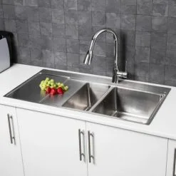 Sauber Kitchen Sink 1.5 Bowl LH Drainer Stainless Steel Modern Inset Strainer Waste
