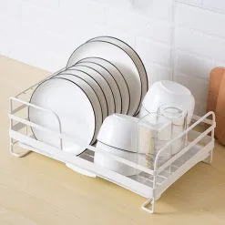 MEZHENG Dish Drainer Kitchen Dish Drainer With Plastic Drying Tray Metal Drying Rack