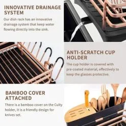 NICEONE Aluminum Dish Rack With Removable Tray, 46 X 37.8 X 15.7 Cm, Gold
