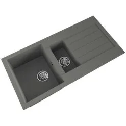 Liquida ELL15GR 1.5 Bowl Reversible Inset Grey Kitchen Sink & Basket Waste