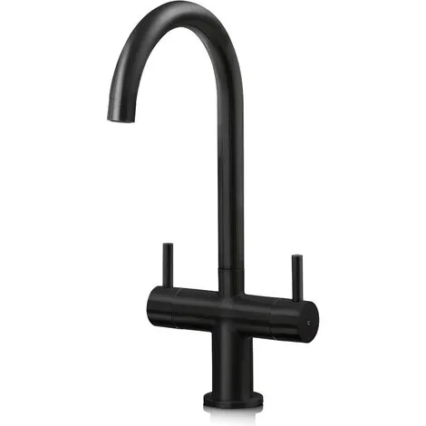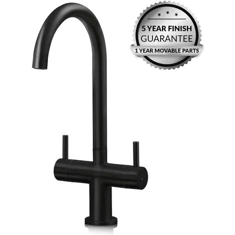 The SIA KT3BL is a swan neck kitchen mixer tap with a contemporary look that will add a touch of style to any kitchen. The matt black finish gives the tap a sleek modern look, allowing it to match perfectly with any type of sink. Try pairing this tap with a white composite sink for a striking contrast! The two quarter turn levers allow for precise water flow and the swivel spout means it is perfect for sinks with multiple bowls.