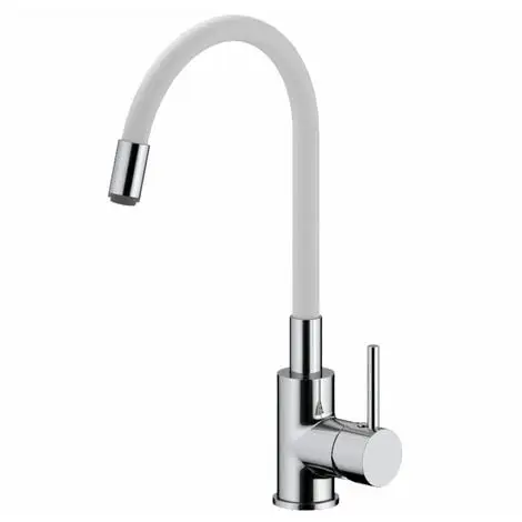 - This kitchen mixer tap is arbitrarily curved, practical and aesthetic. The mixer tap with a flexible spout is an innovative idea to make rinsing the sink easier.