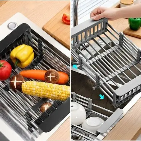a great tool for kitchen utensils and cutlery. - 【Size】: two sizes of retractable dish rack: small: 16.5 x 24.5 x 9.5cm, which can be extended between 24.5-44.4cm, suitable for most kitchen sinks .