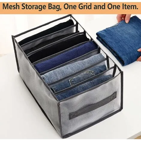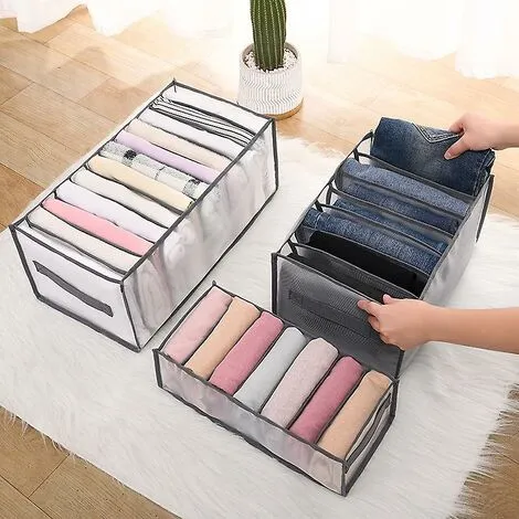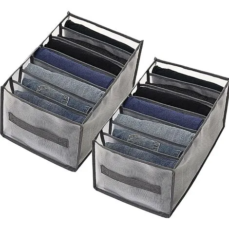 The large capacity drawer organizer measures 36 x 25 x 20 cm. The 7-compartment organizer drawer can be used to store jeans, shirts, and more, with multiple compartments to organize and organize items to keep your living space clutter-free. High Quality The denim compartment storage box is made of high quality breathable mesh fabric with fine workmanship, smooth stitching, durable and not easy to deform. The handy drawer organizer has a functional fold and unfold design. Closet organizers are stackable to keep closets and drawers organized. Transparent and visible Visual mesh storage box, translucent design makes it easy to view and place clothes, making your search more convenient and quick. Various UsesCloset organizers are used to organize or divide drawers, organize, expand and add personal items to increase capacity and meet your different storage needs. storage. color: gray Size: 36*25*20cm Quantity delivered: 2 pieces Product dimensions are all measured by hand, there are errors and the actual product shall prevail. The color of the product is affected by the sight of the shooting light, and there is a slight color difference, which depends on the actual product received.