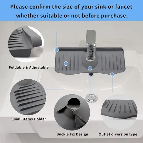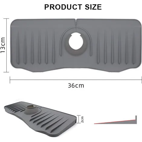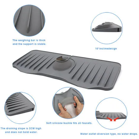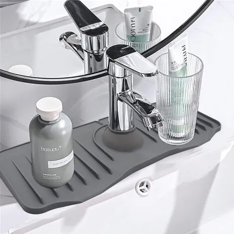 【Quick-Dry Faucet Absorbent Mat for Countertop】: Sloped design, quick drain mode, let your sink dry quickly, silicone splash guard drying mat behind the faucet drip catcher.